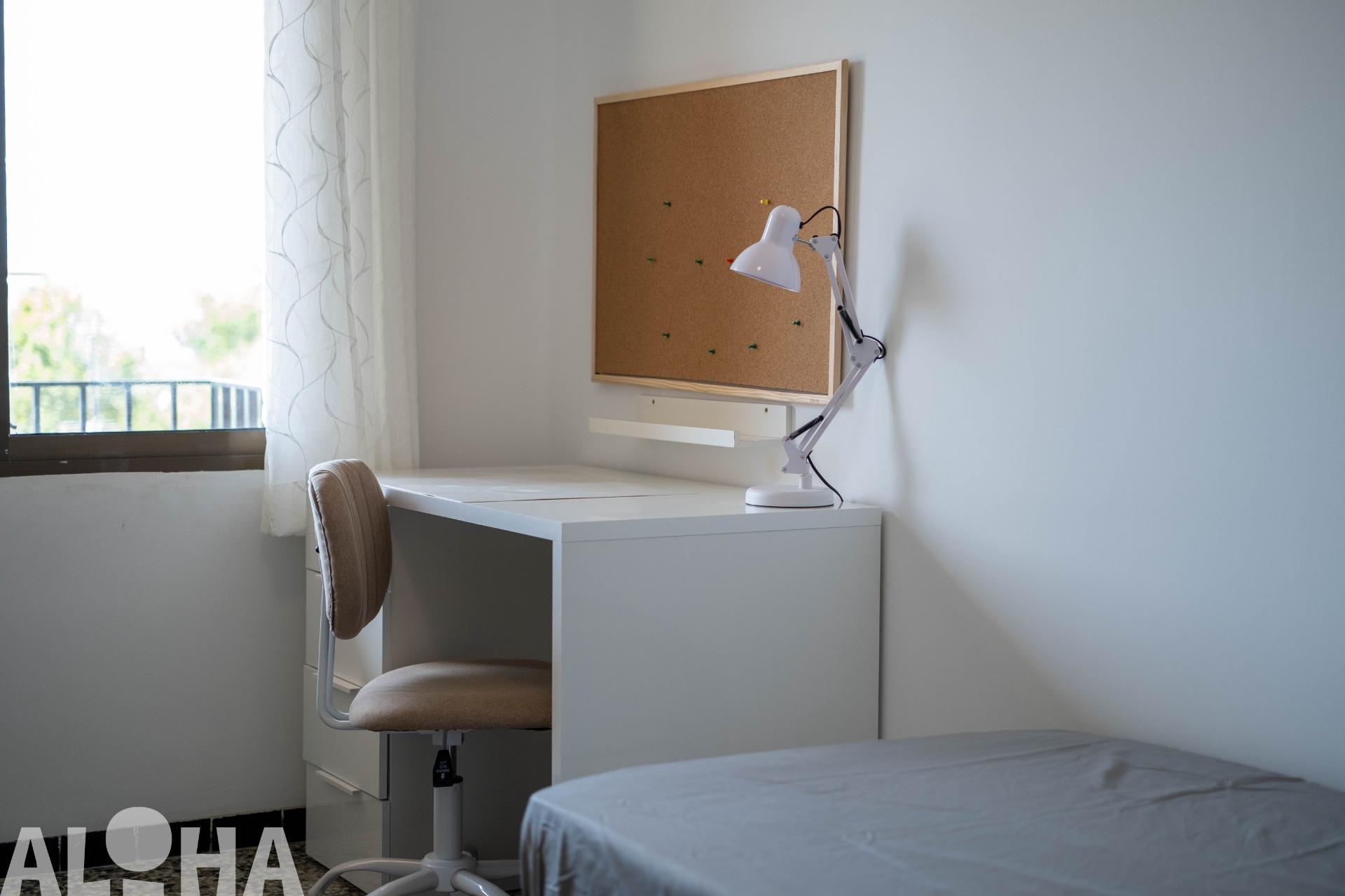 APARTAMENTO PARA ESTUDIANTES EN ALMÁCERA. Este espacioso apartamento cuenta con tres habitaciones, todas equipadas con escritorio y ventilador, perfectas para estudiar cómodamente. Además, dispone de una habitación extra ideal para recibir a familiares cuando te visiten.~La vivienda incluye una cocina completamente equipada y un baño cómodo y funcional para compartir.~Ubicado en una zona estratégica, estarás a pocos minutos de supermercados y con excelentes conexiones de metro y autobús, facilitando tu